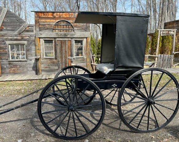 Buggy with standing top, roll up sides and 8' 6" long shafts. Auction price is payable in Canadian $.